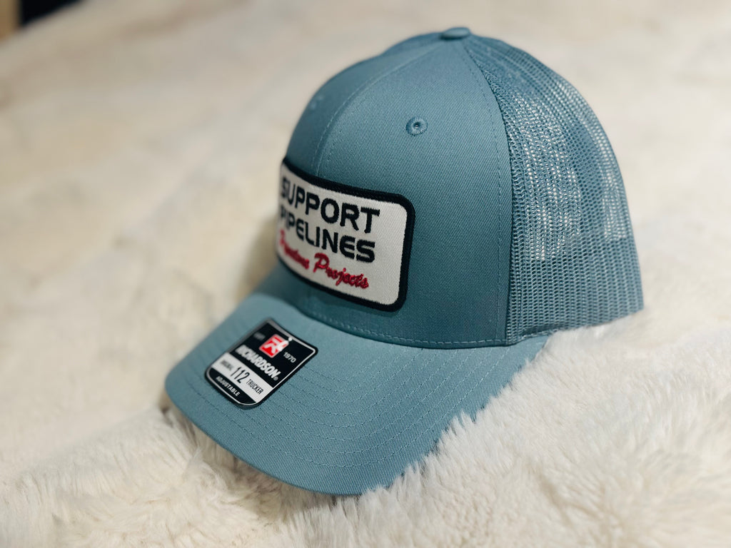 Powder blue with white mesh in our classic curved shape brim.